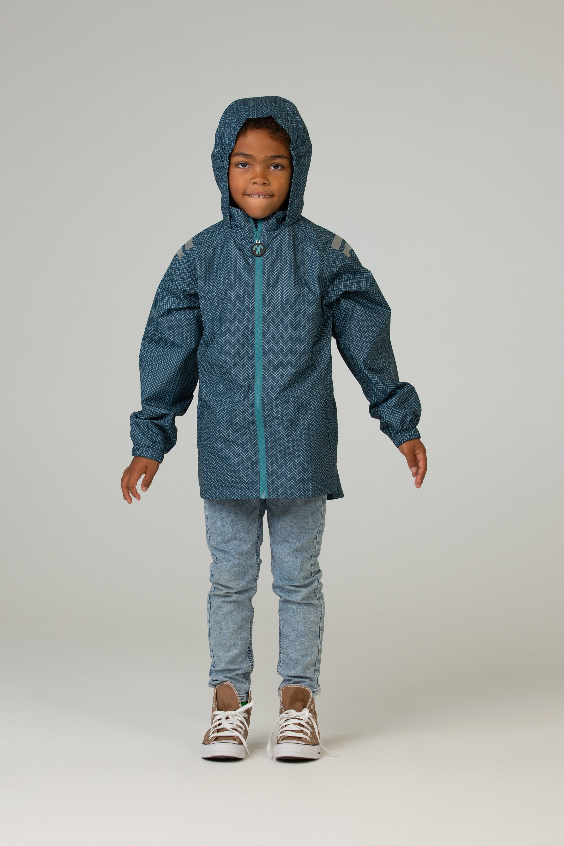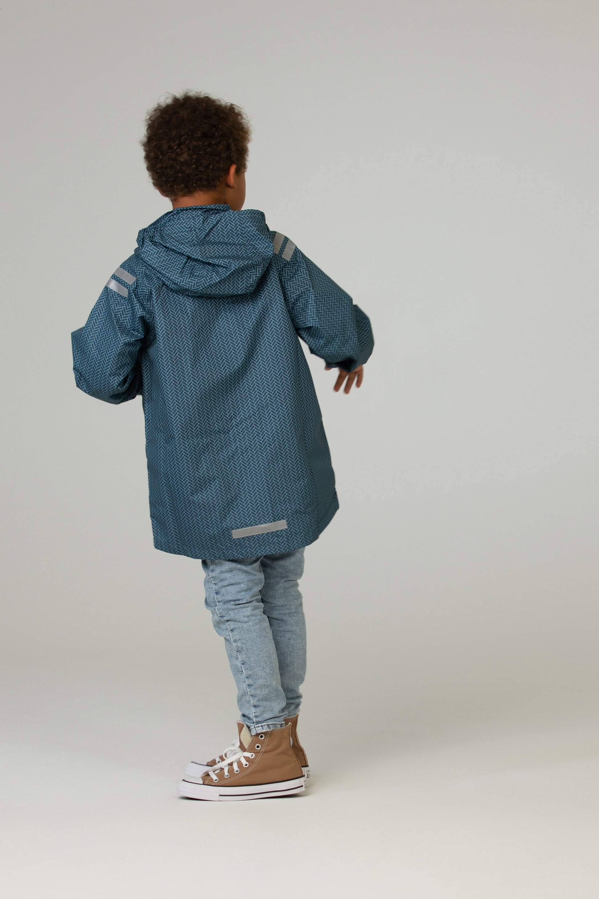 Whatever the forecast, this happy rain jacket is ready for adventure. Fully waterproof with taped seams and a breathable lining, it keeps kids dry without that sweaty, sticky feeling. Reflective details add visibility on darker days, while the lightweight design makes it perfect for year-round exploring—whether it’s biking to school, beach walks on windy afternoons, or forest play in the rain. Pair it with our rain pants or softshell trousers for head-to-toe protection.
