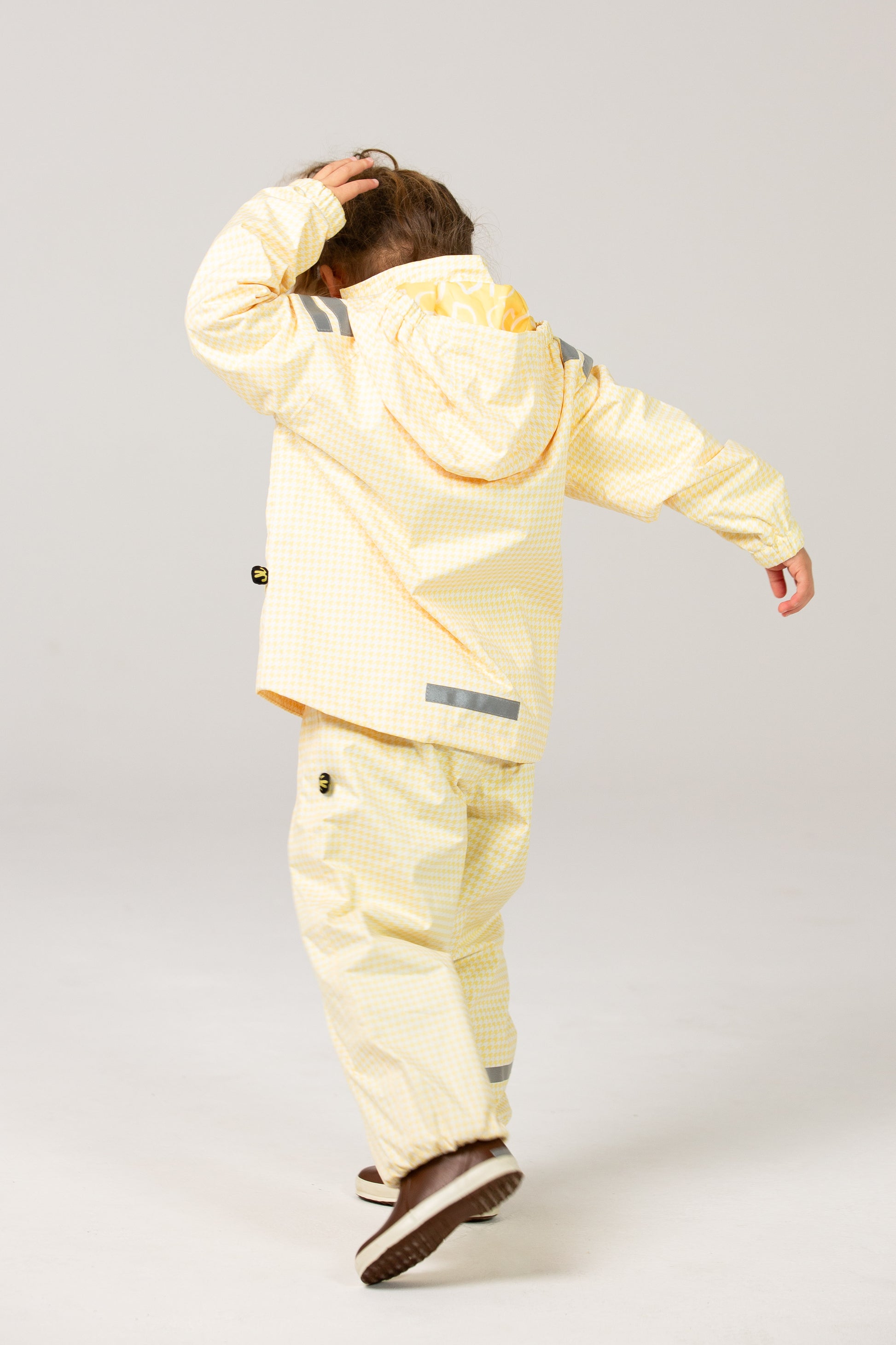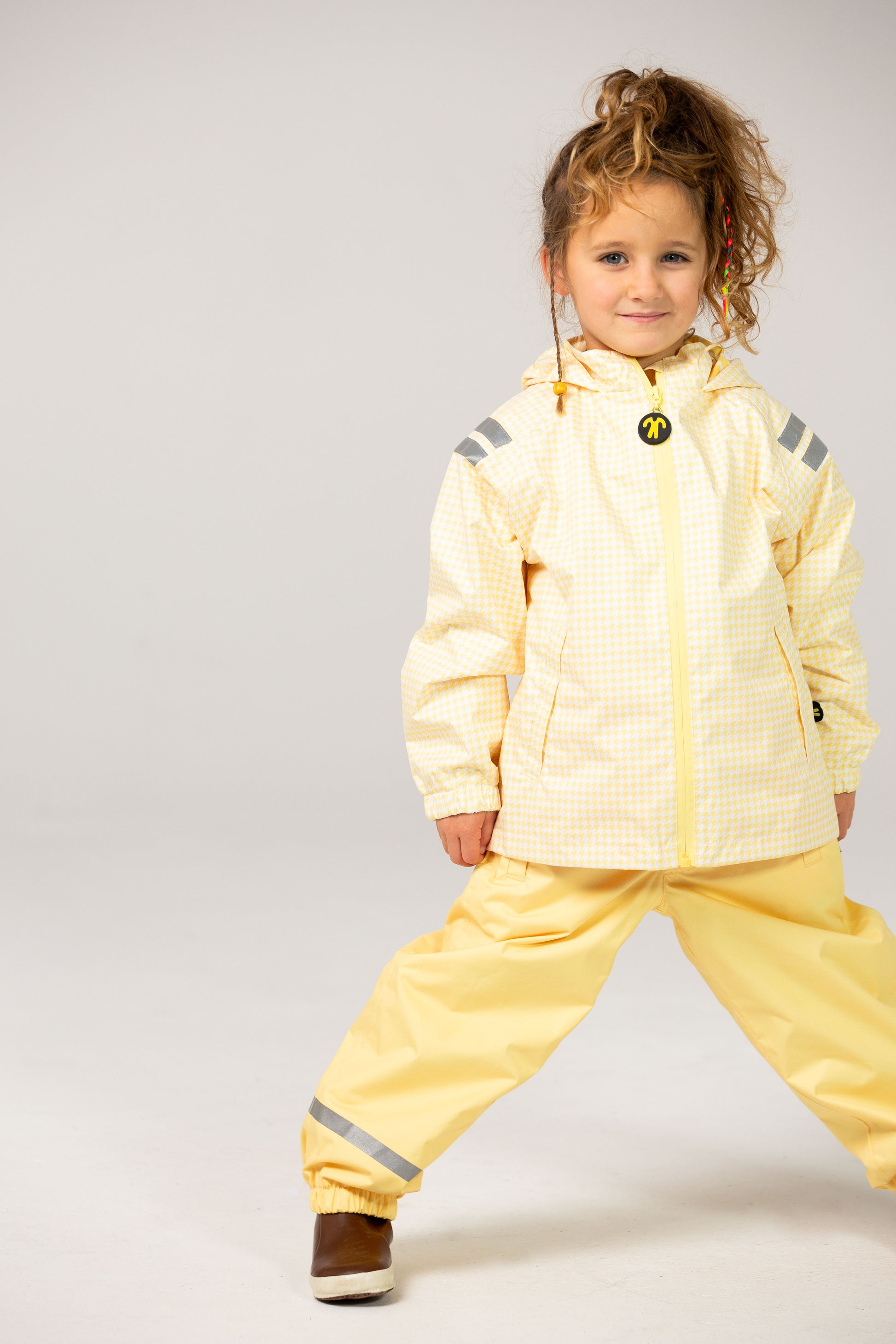 Whatever the forecast, this happy rain jacket is ready for adventure. Fully waterproof with taped seams and a breathable lining, it keeps kids dry without that sweaty, sticky feeling. Reflective details add visibility on darker days, while the lightweight design makes it perfect for year-round exploring—whether it’s biking to school, beach walks on windy afternoons, or forest play in the rain. Pair it with our rain pants or softshell trousers for head-to-toe protection.